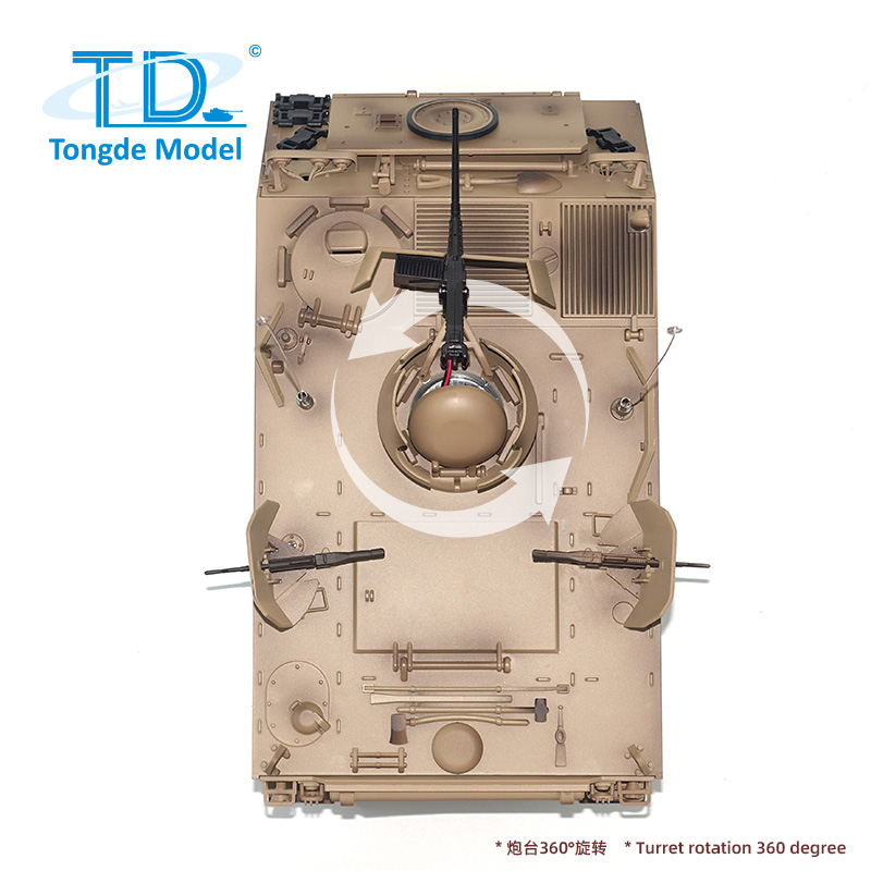 3. The turret rotates 320 degrees, and the barrel elevates up to 30 degrees